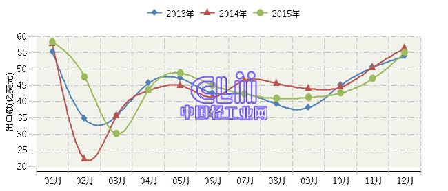 - 2015年1~12月我国家具行业出口累计2016/6/23 10:48:46