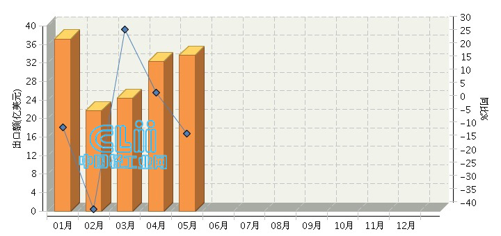 2016年1~5月,全国照明行业累计完成出口额149.05亿美元,同比增长-8.87%。其中: 5月份完成出口额33.64亿美元,同比增长-10.79%。