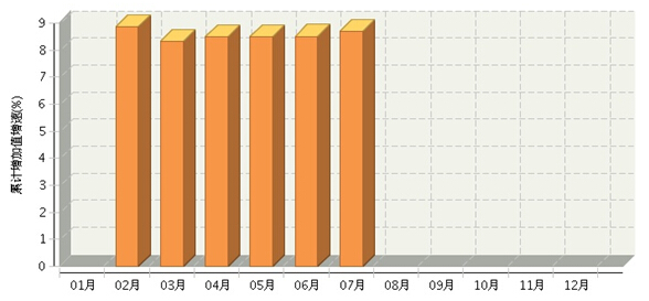 根据国家统计局公布数据,2016年1~7月,全国食品行业累计增加值增速为8.67%。其中:1~2月份累计增加值增速为8.86%;1~3月份累计增加值增速为8.32%;1~4月份累计增加值增速为8.49%;1~5月份累计增加值增速为8.48%;1~6月份累计增加值增速为8.5%;1~7月份累计增加值增速为8.67%。增长情况如下图所示。