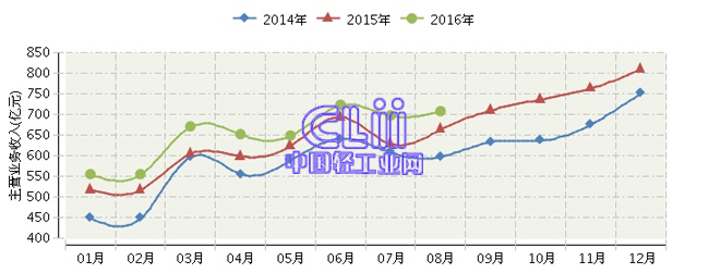 2016年1~8月全国家具行业主营业务收入累计同比增长8.22%