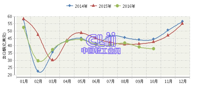 根据海关总署发布数据:2016年1~10月,全国家具行业累计完成出口额396.77亿美元,同比下降9.96%。其中:10月份家具出口额同比下降11.02%。