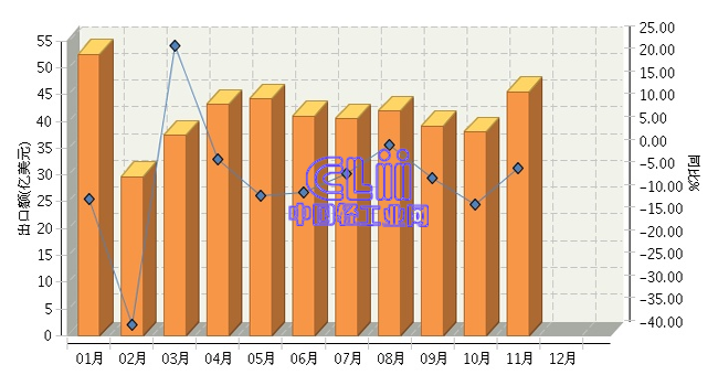 根据海关总署发布数据:2016年1~11月,全国家具行业累计完成出口额442.22亿美元,同比下降9.32%。其中:11月份家具出口额同比下降3.08%。