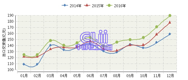 根据国家统计局公布数据:2016年1~12月,全国家具行业的累计出口交货值为1802.36亿元,同比增长3.33%。其中:12月份出口交货值同比增长3.55%。