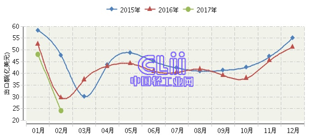 根据海关总署发布数据:2017年1~2月,全国家具行业累计完成出口额72.20亿美元,同比下降7.04%。其中:1月份家具出口额同比下降3.05%,2月份家具出口额同比下降14.03%。
