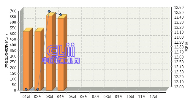 2017年1~4月全国家具行业主营业务成本累计同比增长12.87%