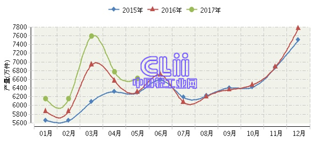 全国家具行业连续三年月度产量对比