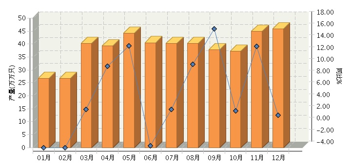根据国家统计局公布数据,2017年1~12月,全国原电池及原电池组(折R20标准只)行业累计完成产量同比增长4.48%。其中:12月份完成产量同比增长1.52%。2017年全国原电池及原电池组行业月度产量及同比如下图所示。