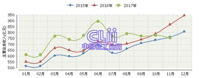 2017年1~11月全国家具行业主营业务收入累计同比增长10.24%