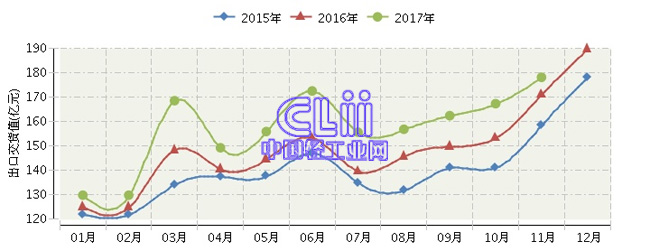 2017年1~11月全国家具行业出口交货值累计同比增长8.12%