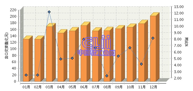 2017年全国家具行业月度出口交货值及同比