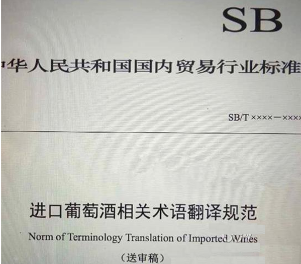 根据《商务部办公厅关于下达2013年流通行业标准项目计划的通知》要求,中国食品土畜进出口商会牵头起草完成了《进口葡萄酒相关术语翻译规范》(送审稿)。修改意见已于2014年1月10日前反馈至商务部市场运行司,目前正在审核修改完善阶段。该标准旨在向行业推荐统一的进口葡萄酒相关术语的中文翻译,将以商务部的名义发布。据相关人士透露,该标准预计今年年底发布,届时全国会统一推行使用这个翻译标准。