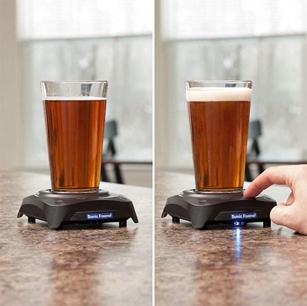 这台装置被称作声波发泡机,它能够借助超声波让任何啤酒都出现泡沫。据它的制造商ThinkGeek公司宣称,它使用了六节AA电池进行供能,能够为你制造多达3000次泡沫。而且他们承诺他们的啤酒发泡装置不会破坏啤酒的口感。