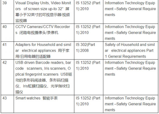 继印度电子信息部发布30项电子与信息类产品强制性登录要求法令后, 2017年8月16日再公告下列产品即将列入BIS强制登录计划。 该公告执行过渡期为六个月;即预计强制执行日期为 2018年2月16日。