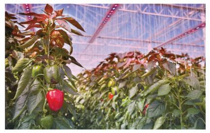 图1. 欧司朗新的730nm LED可以提高辣椒、西红柿和玫瑰的生产力。