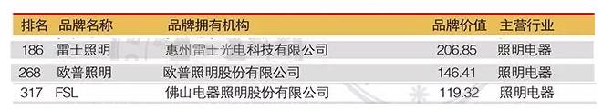 雷士、欧普、佛山照明等照企入选中国500最具价值品牌