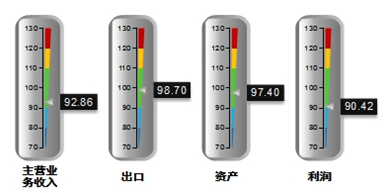 从分指标运行指数来看,2013年12月中轻主营业务收入景气指数92.86,出口景气指数98.70、资产景气指数97.40、利润景气指数90.42。从同比增长情况来看,除资产景气指数外,其余各项指标均低于去年同期水平,从环比数据看,主营业务收入指数及出口指数环比小幅增长,其它指数环比均出现下降。