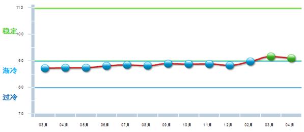 造纸行业景气度有所回暖,在3月向上突破至稳定区间后,本月继续保持在稳定区间运行,景气指数90.94。