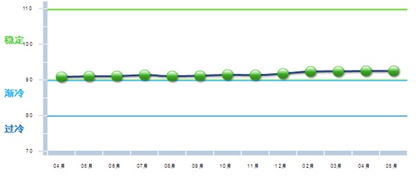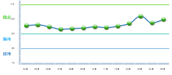 中国轻工业经济运行及预测预警系统数据显示:2017年5月份中轻景气指数为90.97,较上月小幅上升0.25点,该指数自今年年初重回绿色“稳定”区间,说明今年以来,轻工业经济运行有企稳回暖态势。