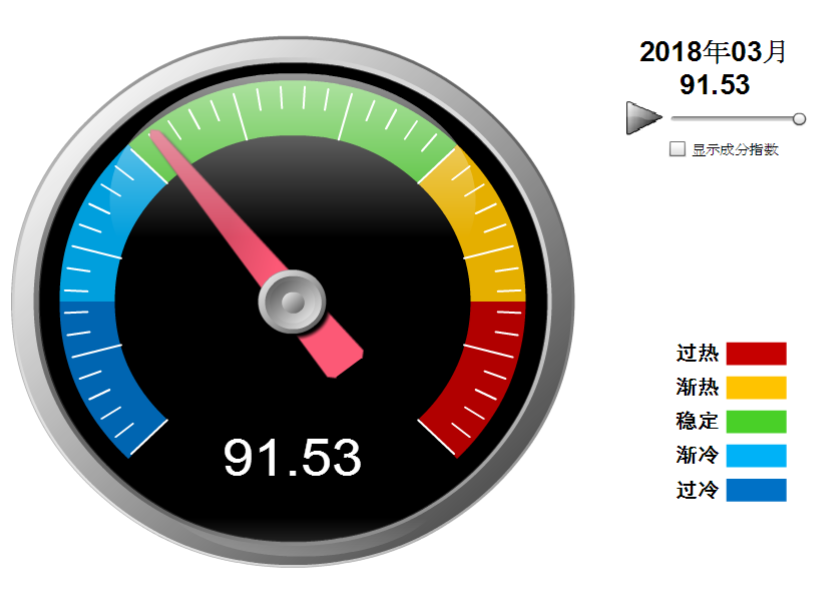 据中国轻工业经济运行及预测预警系统数据显示,2018年3月中国家电制造行业景气指数为91.53,处在“绿色”稳定区间底部,较2月回升0.97点。
