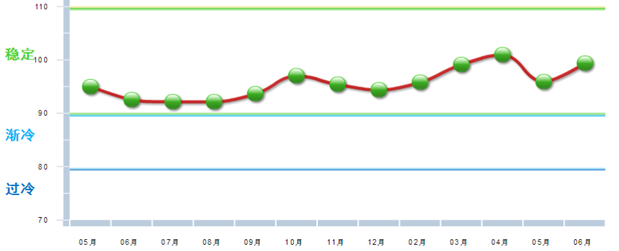 据中国轻工业经济运行及预测预警系统数据显示,2018年6月中国酿酒行业景气指数为99.35,处在“稳定”区间,较5月回升3.44点。