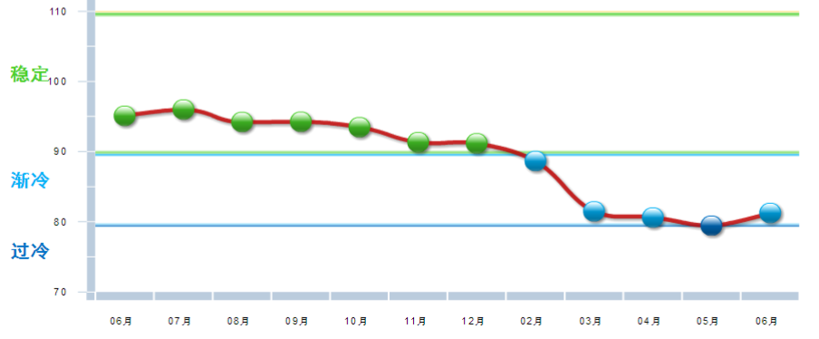 据中国轻工业经济运行及预测预警系统数据显示,2018年6月中国玩具制造业景气指数为81.25,处在“渐冷”区间,较5月回升1.8点。