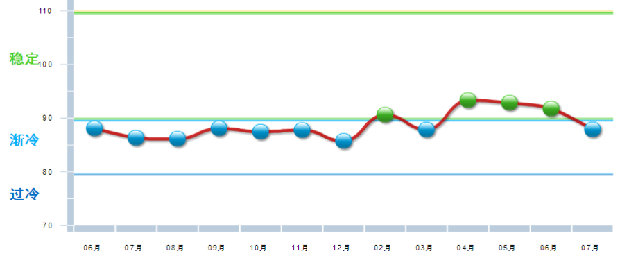 四项分项指数环比均下降,出口景气指出降幅明显,其中:主营业务收入景气指数89.50,位于“渐冷”区间,较上月下降0.86点;出口景气指数为73.08,位于“过冷”区间,较上月下降28.19点;资产景气指数为88.49,位于“渐冷”区间,较上月下降0.92点;利润景气指数95.17,位于“稳定”区间,较上月下降3.33点。