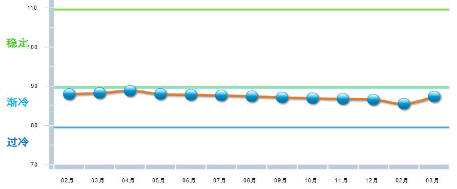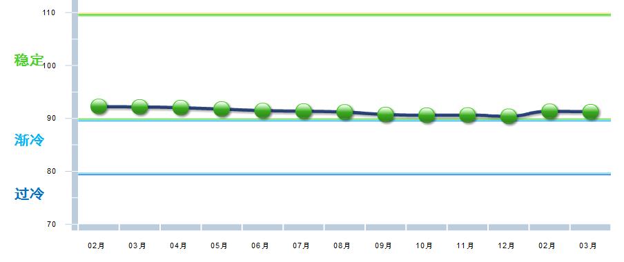 中国轻工业经济运行及预测预警系统数据显示:2019年开年,中轻景气指数继续在蓝色“趋冷”区间波动,由于春节错月因素影响,一季度