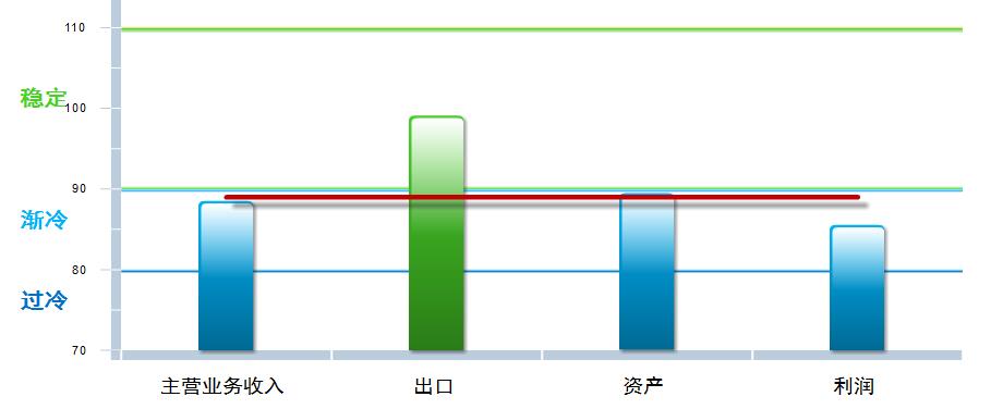 四项分项景气指数环比2月均有上升,出口指数上升幅度较大,其中:营业收入景气指数88.53,位于“渐冷”区间,较2月回升0.24点;出口景气指数为99.11,位于“稳定”区间,较2月上升4.17点;资产景气指数为89.49,位于“渐冷”区间,较2月回升0.97点;利润景气指数85.57,位于“渐冷”区间,较2月上升1.12点。