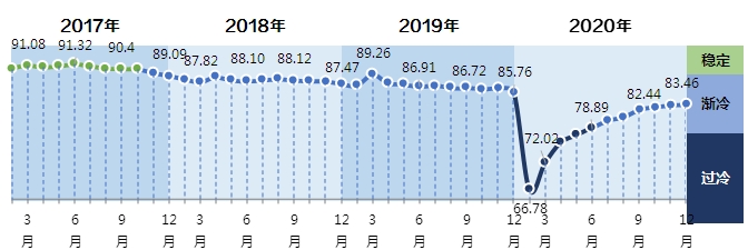 2020年12月中国轻工业景气指数83.46