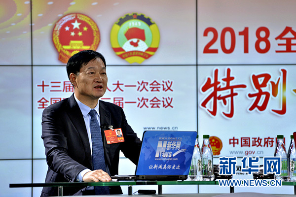 全国人大代表、牧原食品股份有限公司董事长秦英林做客新华网2018全国两会特别访谈 新华网 李相博摄