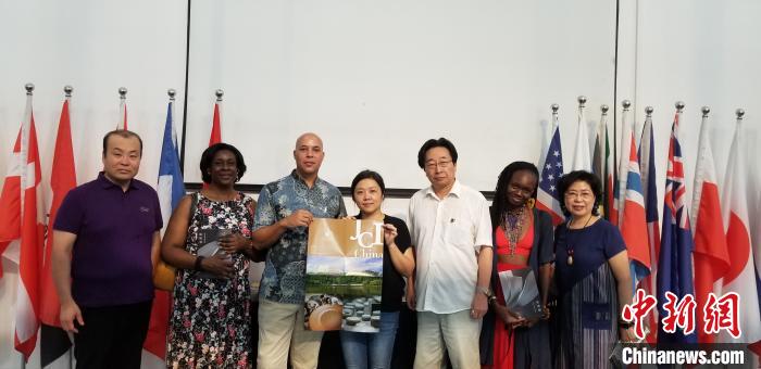 2019年8月,巴巴多斯驻中国大使访问景德镇陶瓷大学,张婧婧与大使合影。 受访者供图