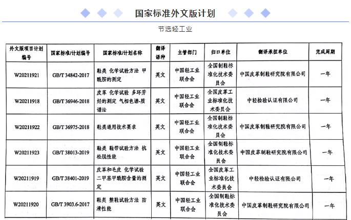 鞋类、皮革行业6项轻工国家标准外文版计划发布