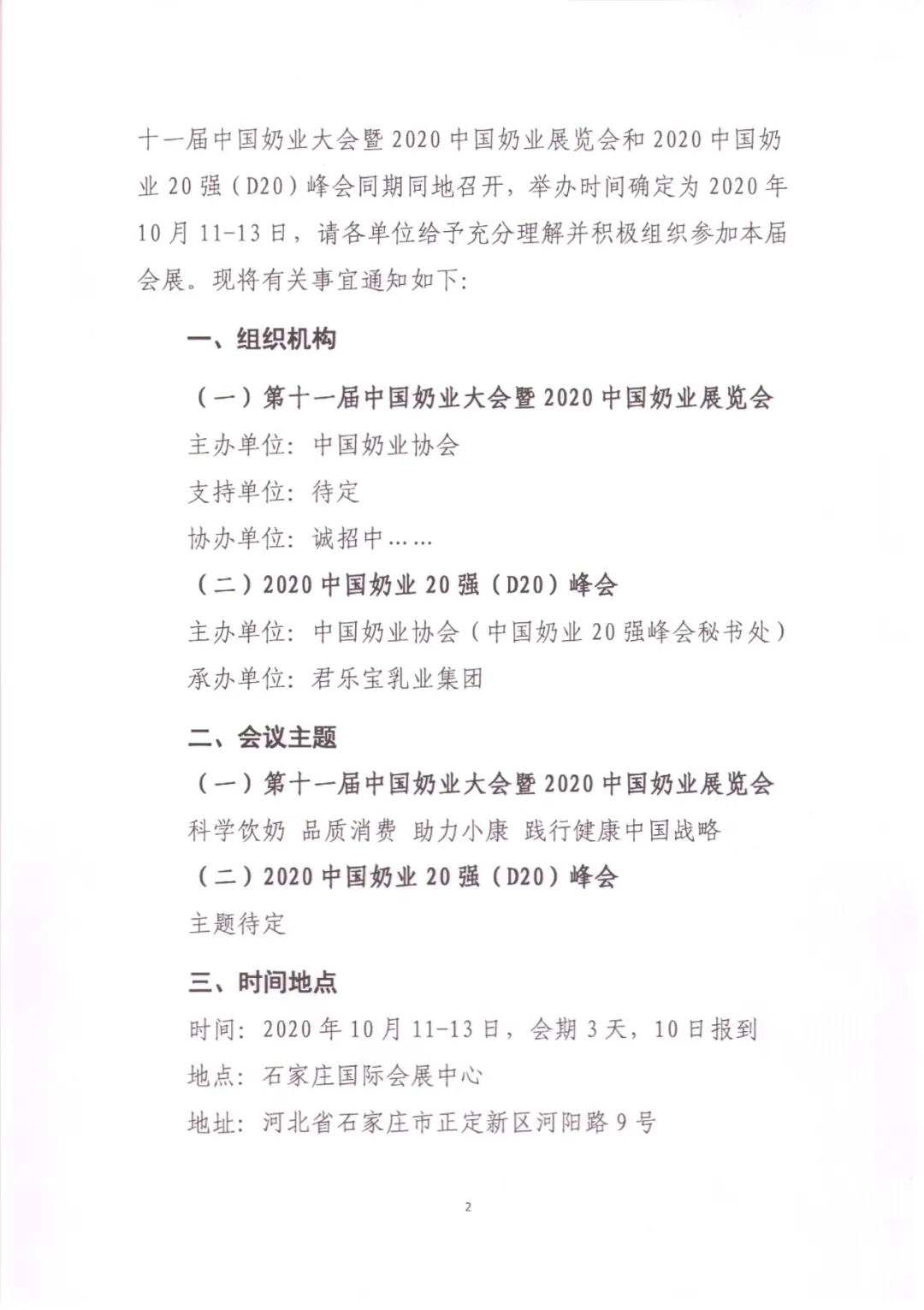 第十一届中国奶业大会暨2020中国奶业展览会延期 将与2020中国奶业20强(D20)峰会同期同地召开