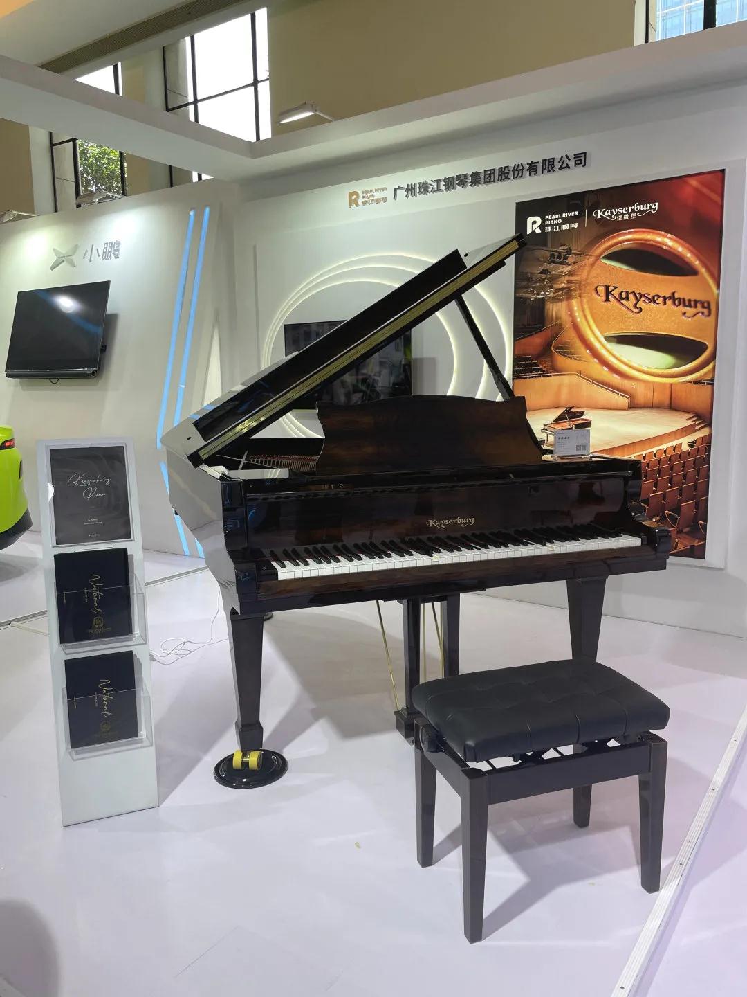 珠江钢琴作为广东智造品牌企业代表,在博览会现场,“珠江·恺撒堡”KA212T【藏锋】墨西哥黑檀定制钢琴亮相广东展馆,将中国技术和中国声音向全球展现。