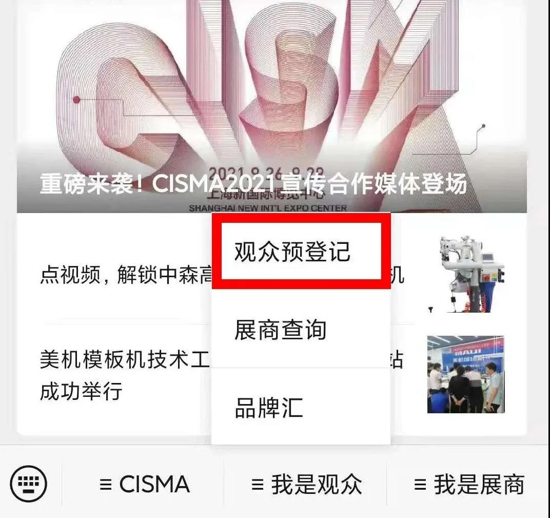登录展会官网(http://www.cisma.com.cn)进行预登记。