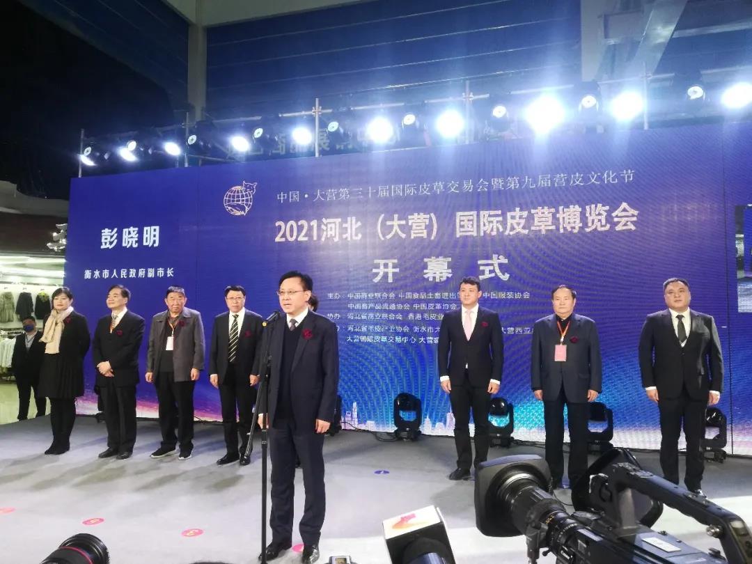 2021年12月12日,2021河北(大营)国际皮草博览会(中国大营第三十届国际皮草交易会暨第九届营皮文化节)开幕式在河北省枣强县大营镇西亚皮草新城隆重举行,本届国际皮草博览会以“云·裳·裘”为主题。中国皮革协会作为博览会的主办方之一,协会党支部副书记张西文和产业部主任黄彦杰出席了本次活动,参加本次活动的还有中国服装协会、中国食品土畜产进出口商会、中国畜产品流通协会、河北省毛皮产业协会的有关负责人,衡水市、枣强县的相关领导以及当地龙头企业代表。