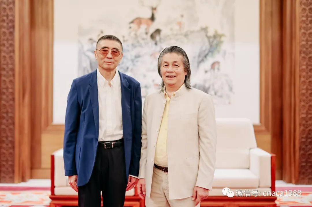 ▲中国工艺美术协会会长徐念沙与伍炳亮大师亲切会谈