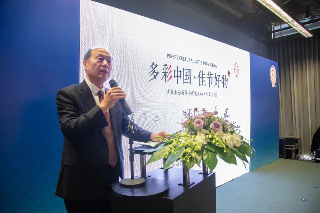 作为活动主办方之一, 党委副书记、中国乐器协会理事长王世成在致辞中表示“多彩中国 佳节好物” 文化和旅游贸易促进活动,按照创新融合的原则,以“乐动中国,享受音乐”为主题,在各方的共同努力下,共征集初选了80个产品参与活动,产品来自15个省市的37家企业,涵盖了乐器10个大类29个品种。经过专家评审,最终遴选出70个产品编入产品手册,并精选了10个产品在“中国(上海)国际乐器展览会”现场进行路演推介。通过系列的展示与推广活动,一定会产生好市场、好效益,也必将为促进整个乐器产业转型升级高质量发展,提升我国优秀文旅产品及服务的知名度和国际竞争力发挥积极的作用。