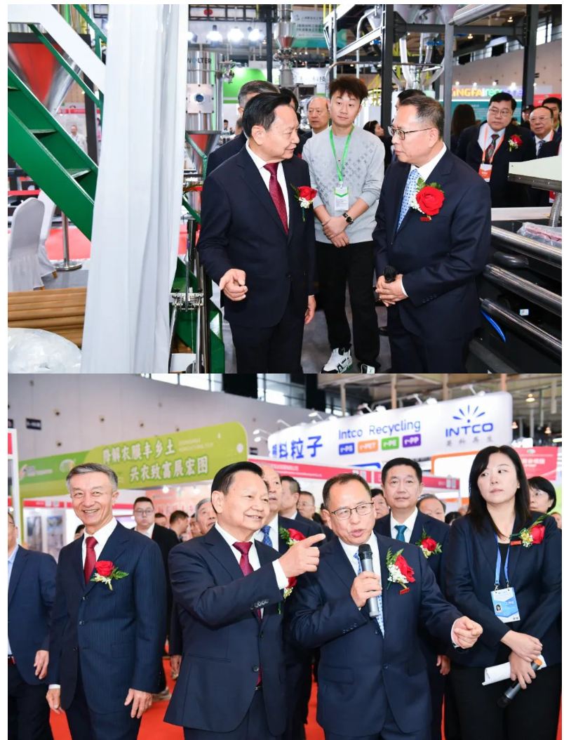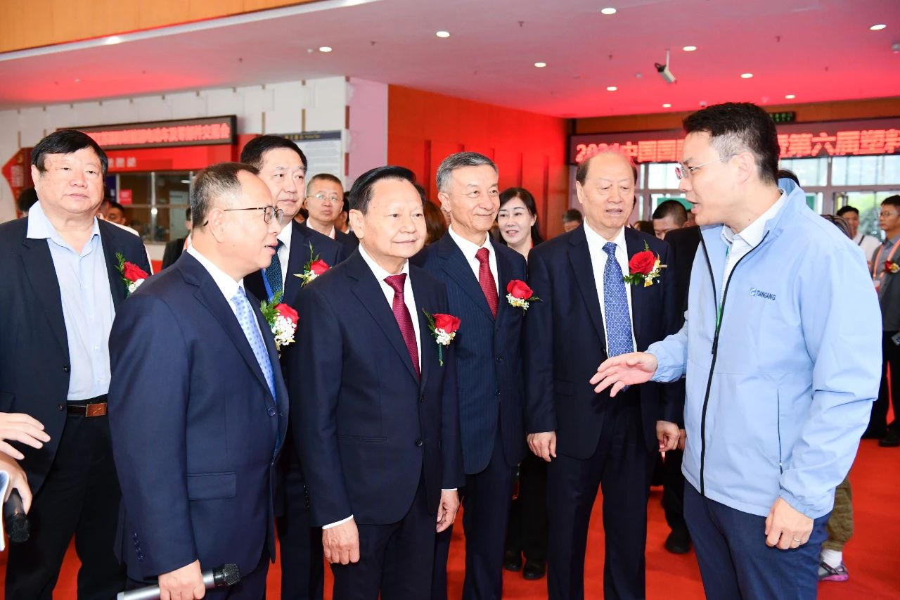 张崇和部长长期关注中国塑料行业在科技创新、绿色低碳发展、传统产业升级和结构调整、产品和服务质量提升等方面的最新进展。在参观过程中,张崇和部长逐一询问了企业在生产设备与制品的功能创新、技术优势等情况以及国际化优势。所到之处,他还鼓励企业要加强科技创新,推进技术、产品、 管理模式、商业模式等方面的进步,增强自身市场竞争力,不断向国际一流迈进。各位领导通过观摩各类新材料、新技术、新装备、新产品,切实了解了行业当前在转型升级、绿色理念、发展新质生产力等方面的新举措、新成果。