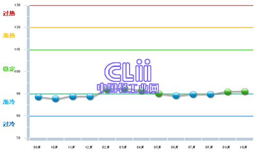 图1 2012年9月~2013年10月家具行业利润景气指数变化态势