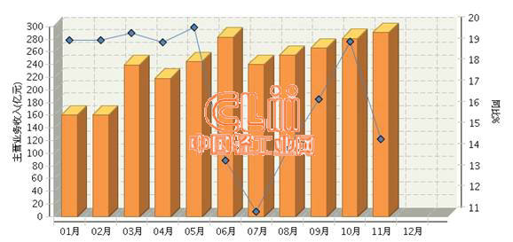 - 2013年1~11月家具行业主营业务收入2014/1/27 10:13:31