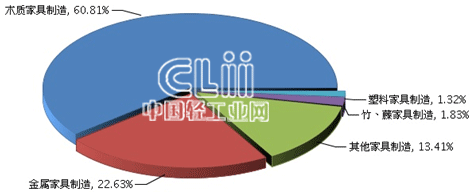 图 2013年度家具各子行业规模以上企业累计资产总计占比