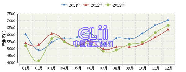 根据国家统计局公布数据:2013年,全国家具行业累计完成产量65,161.78万件,同比下降3.50%。其中:12月份完成产量6677.35万件,同比下降0.17%。
