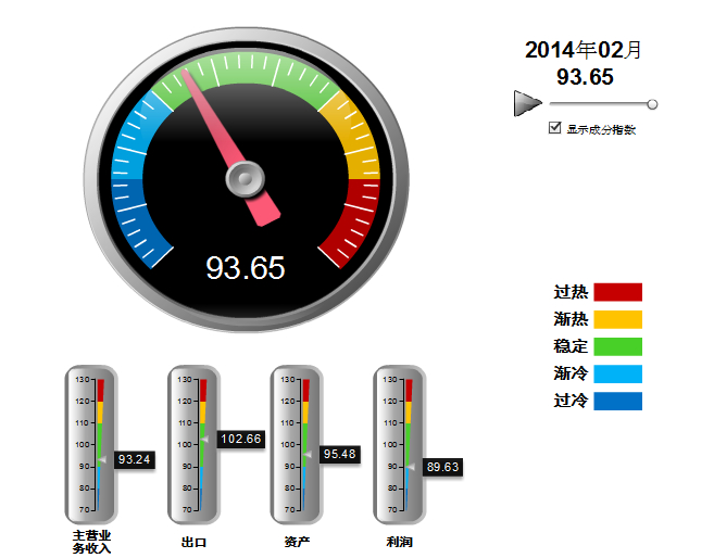 图2 2014年2月 皮革行业景气指数分指标显示状况