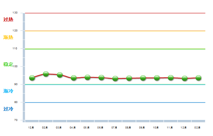 图3 2012.12—2014.2 皮革行业景气指数变化态势
