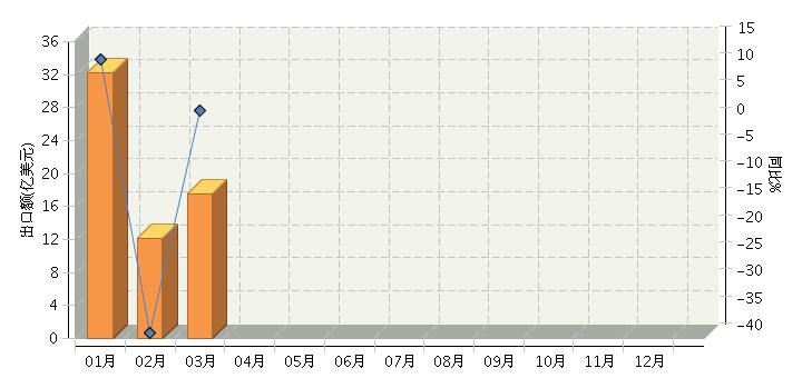 根据海关总署发布数据,2014年1~3月,全国皮革及其制品行业累计完成出口额61.77亿美元,同比增长-6.02%。其中3月份完成出口额17.46亿美元,同比增长2.23%。2014年全国皮革及其制品行业月度出口额及同比增长趋势如下图所示。