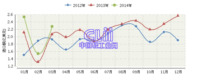 根据海关总署发布数据:2014年一季度,全国家具行业累计完成进口额6.36亿美元,同比增长15.30%。其中:3月份完成进口额2.28亿美元,同比增长10.02%。