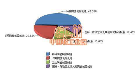 图4 2014年1~3月全国陶瓷行业累计利润总额行业小类占比情况