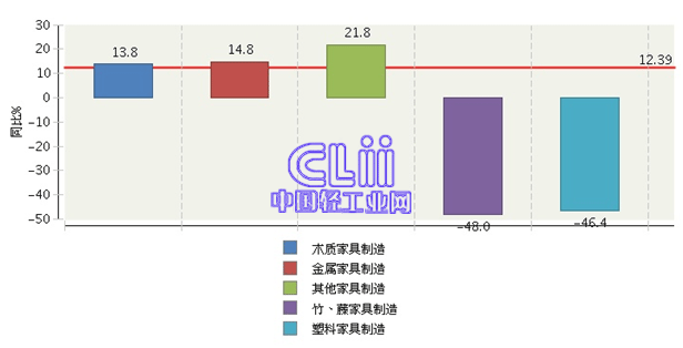 图3 2014年1~2月家具子行业规模以上企业累计利润总额增速情况