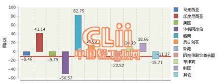 图2 2014年1~6月我国陶瓷砖累计出口额主要贸易国同比增长情况